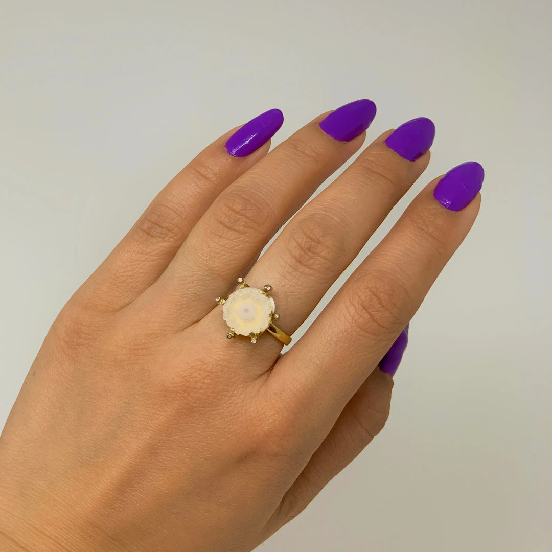 - Gemstone :Â Moonstone geode, diamonds