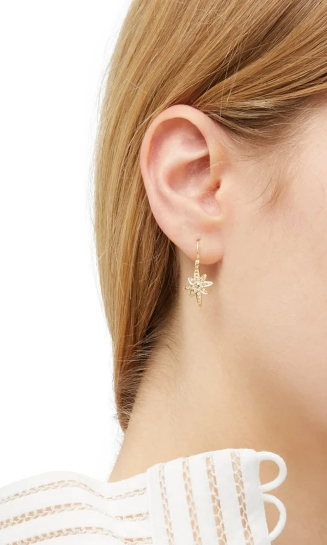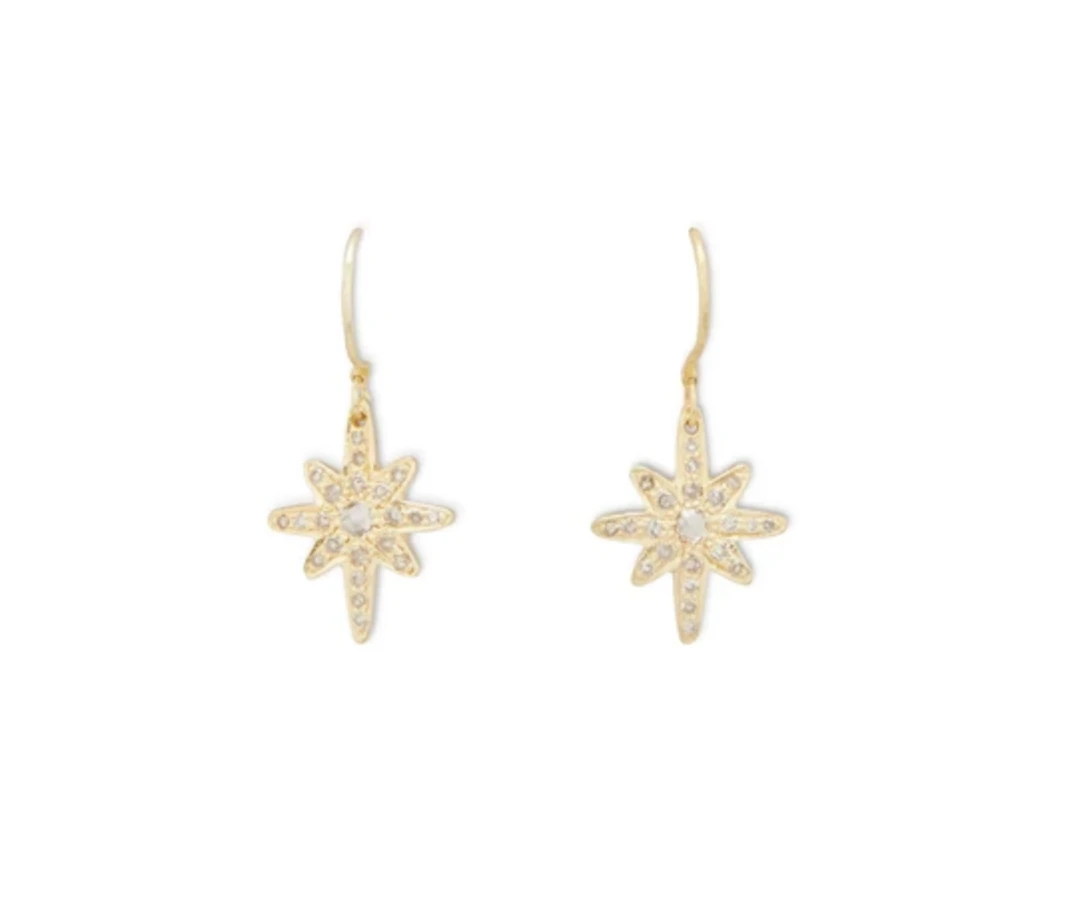 Vega Star earrings are little starbursts with diamonds that stand out brilliantly against the gold.Â