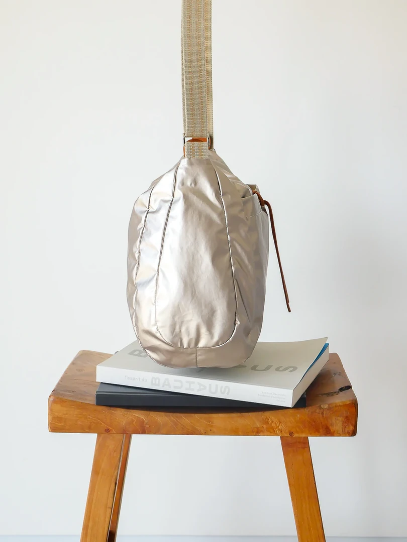 Kallika Glam bag with full grain leather detail. Carried on the shoulder, metal zipper to close it, one pocket The Kallika has a pocket on the inside, a pocket on the outside and a wide, cotton and lurex braided shoulder strap. Kallika is light, practical, fun and comfortable to use.Â
