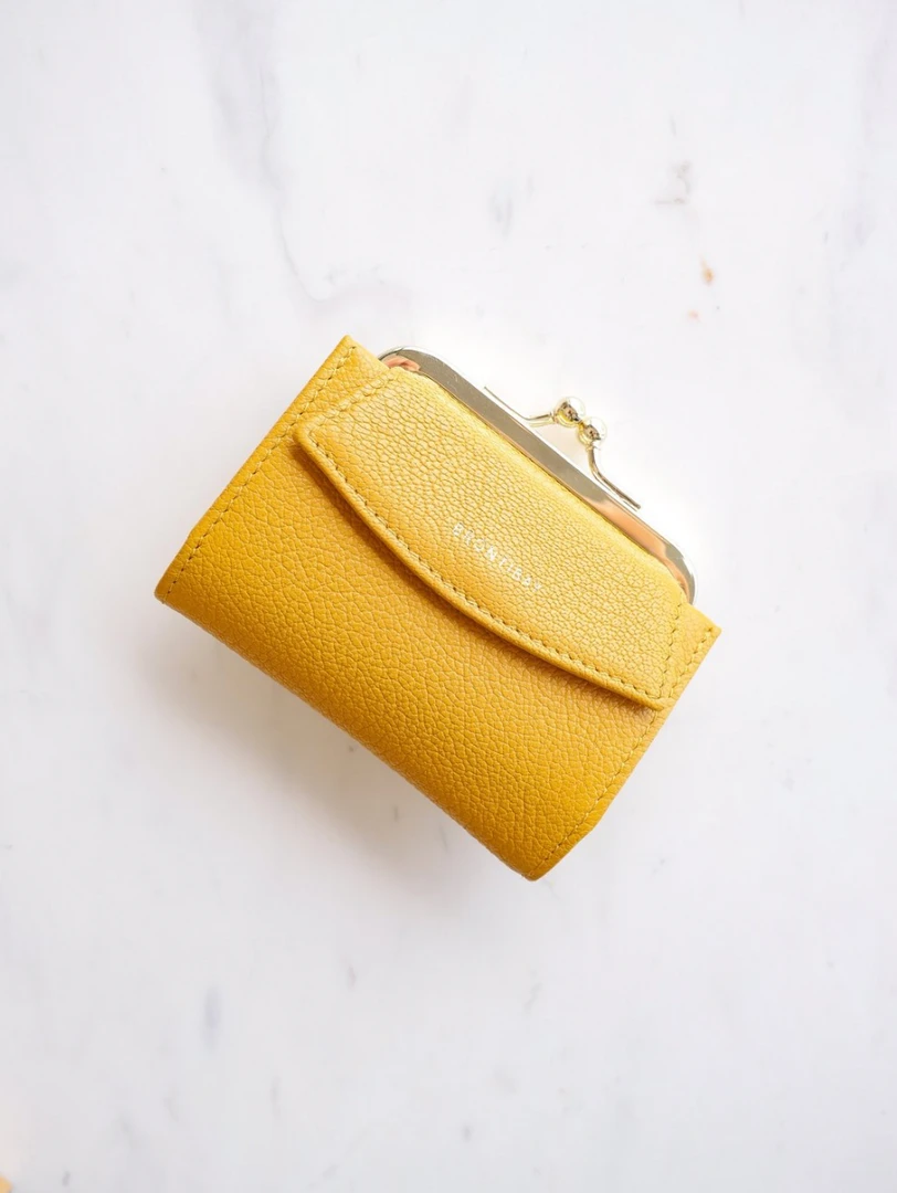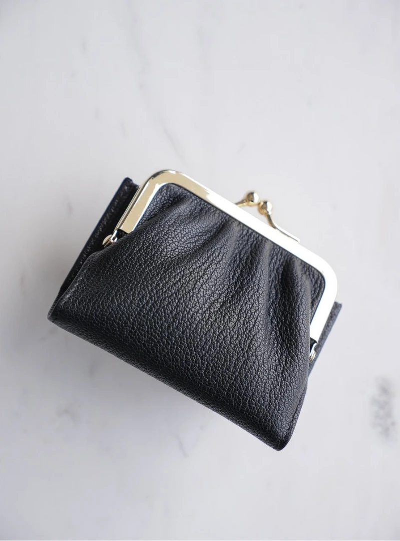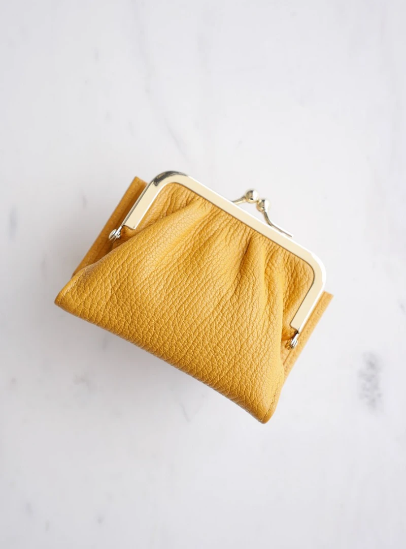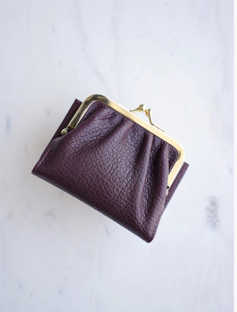Maddy retro wallet in full grain goatskin leather with light natural grain, subtly gold-plated metal clasp, pocket with flap, closed with a snap that can hold several credit cardsÂ