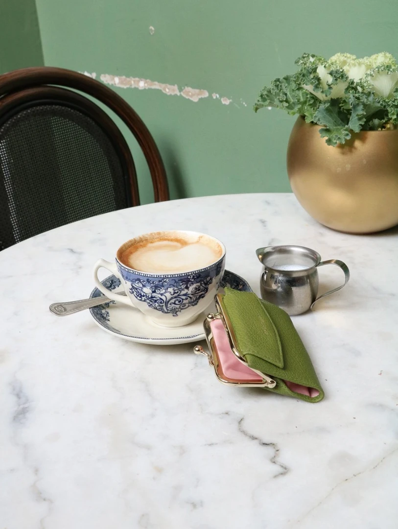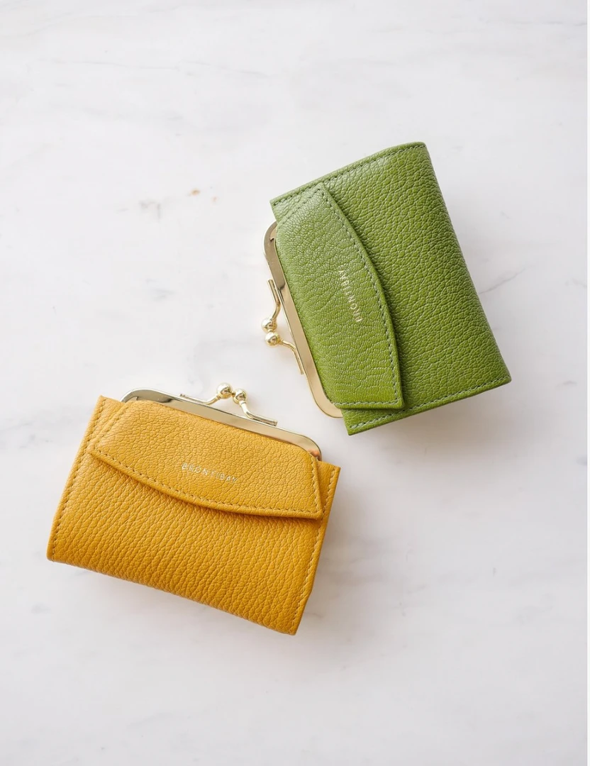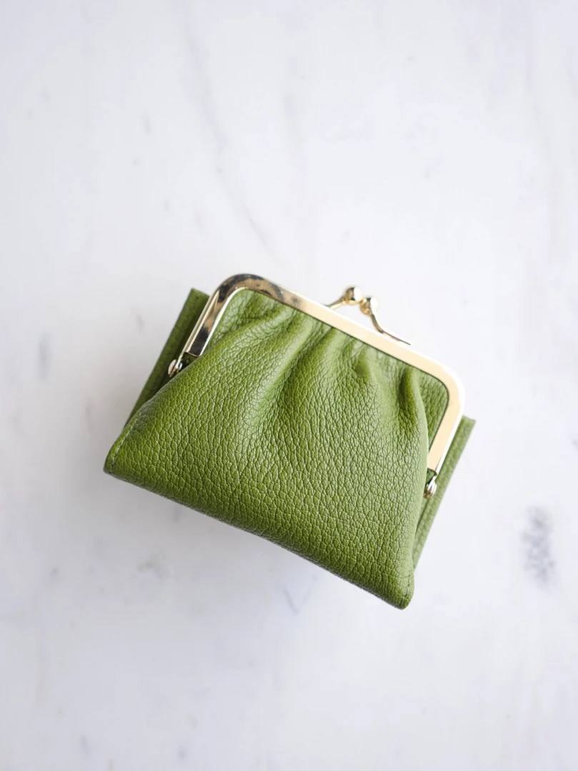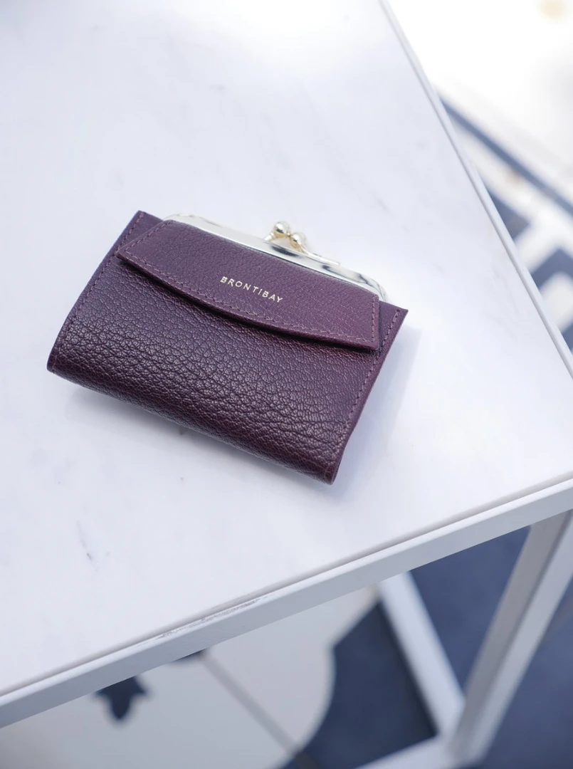 Maddy retro wallet in full grain goatskin leather with light natural grain, subtly gold-plated metal clasp, pocket with flap, closed with a snap that can hold several credit cardsÂ