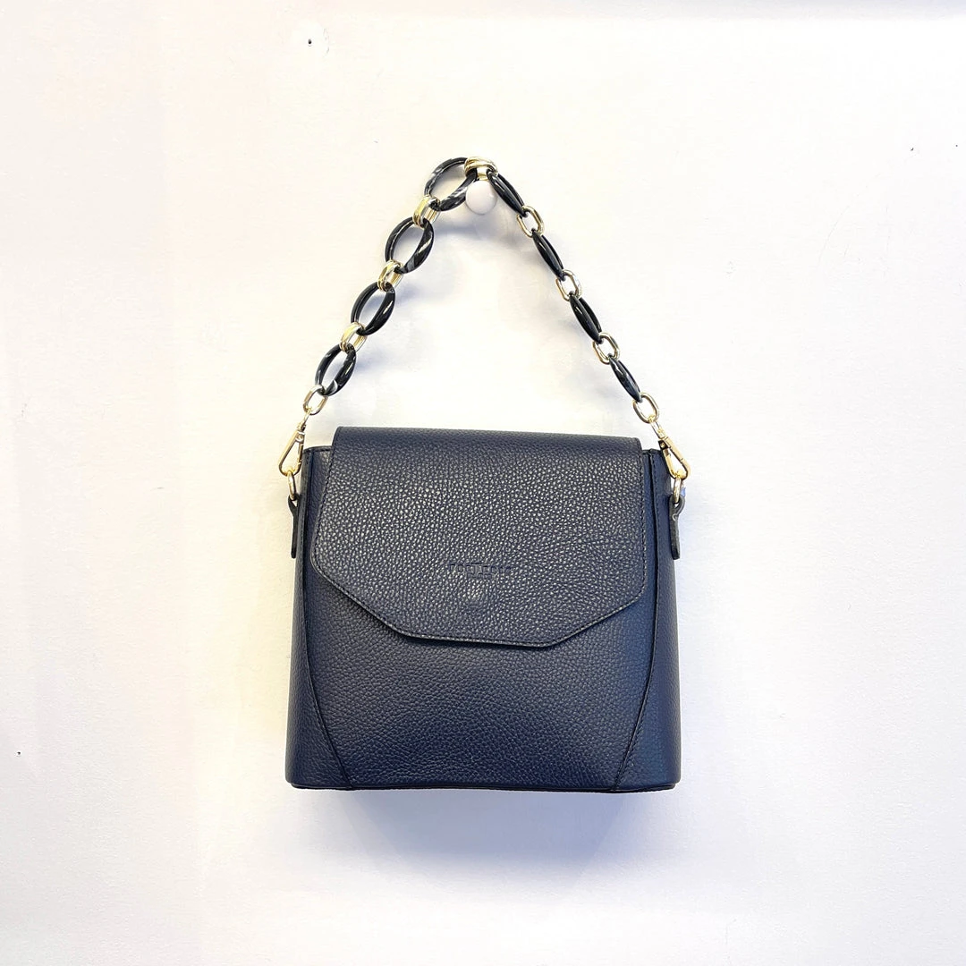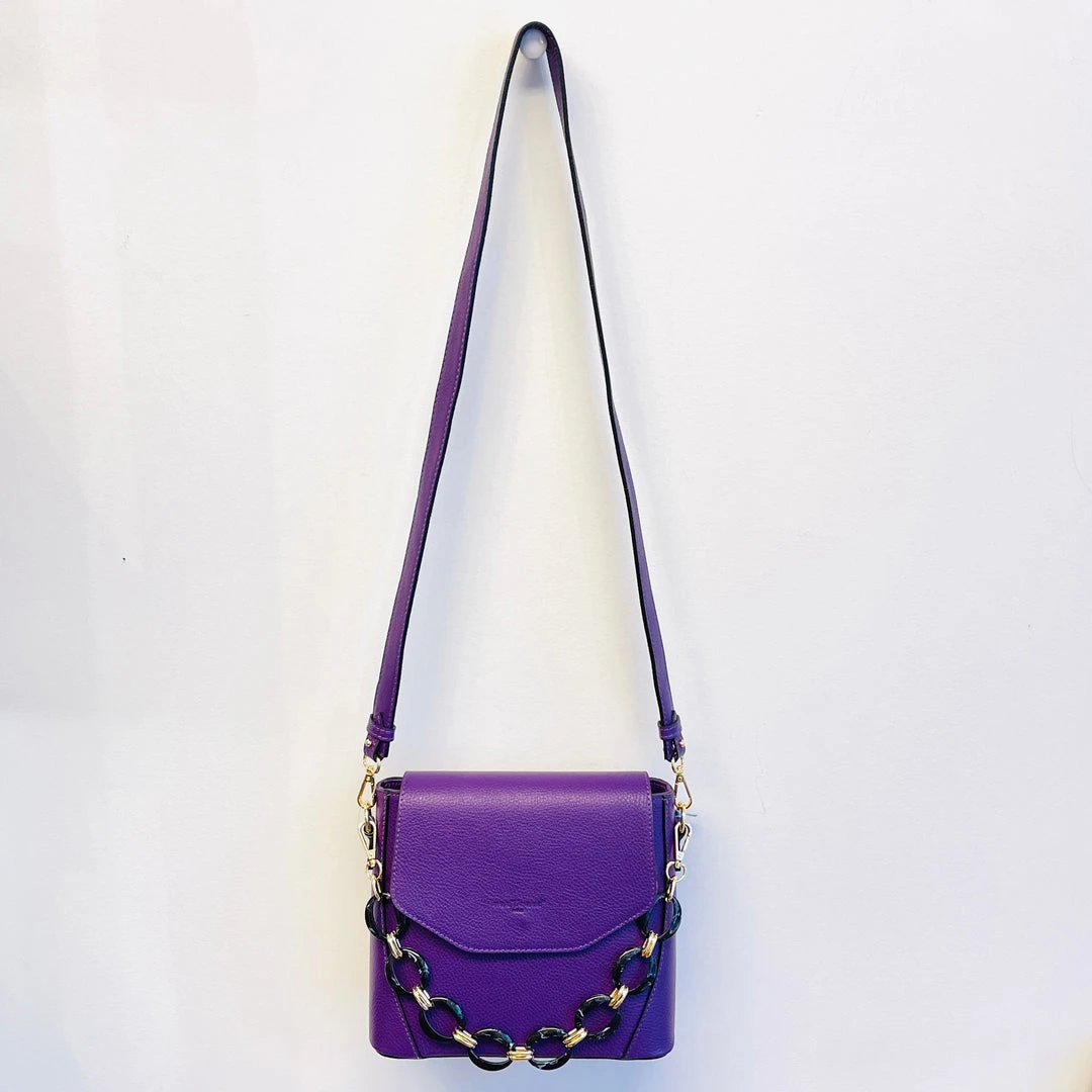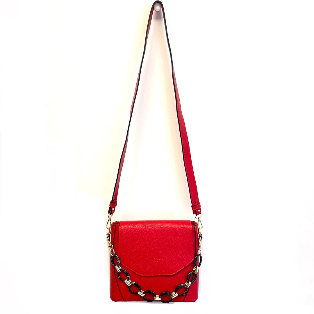 Full Calfskin Leather, detachable long leather shoulder strap, detachable resin tortoiseshell handheld chain