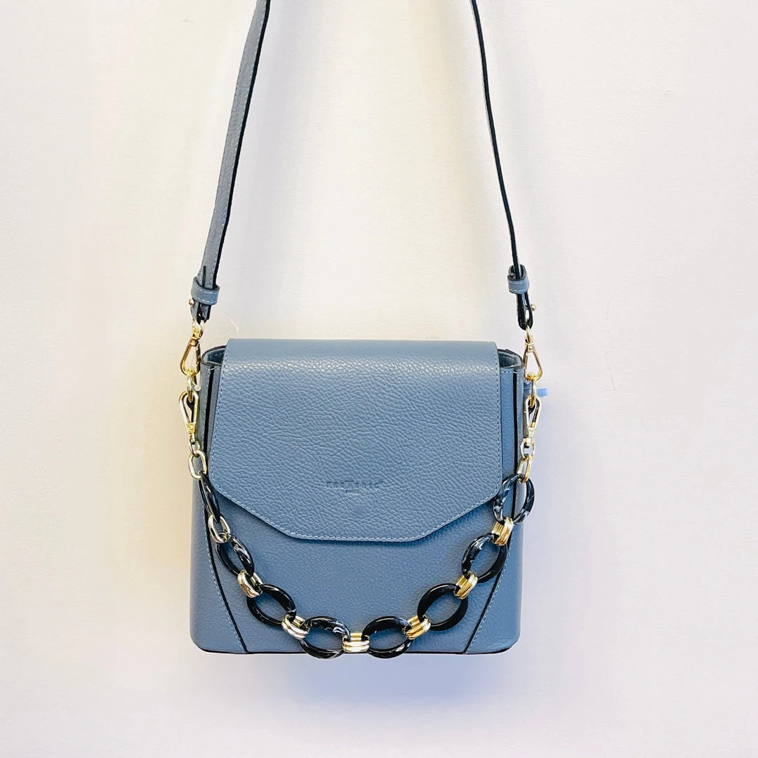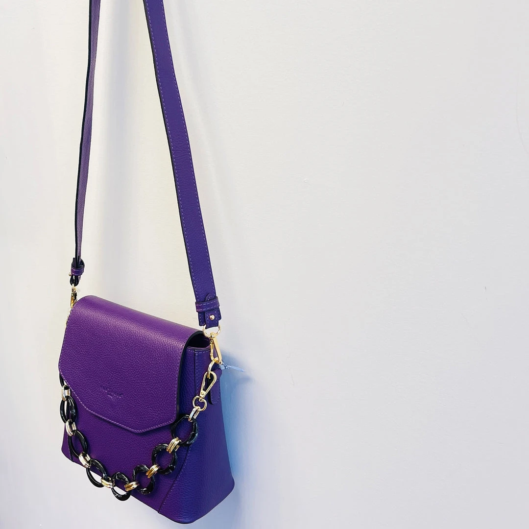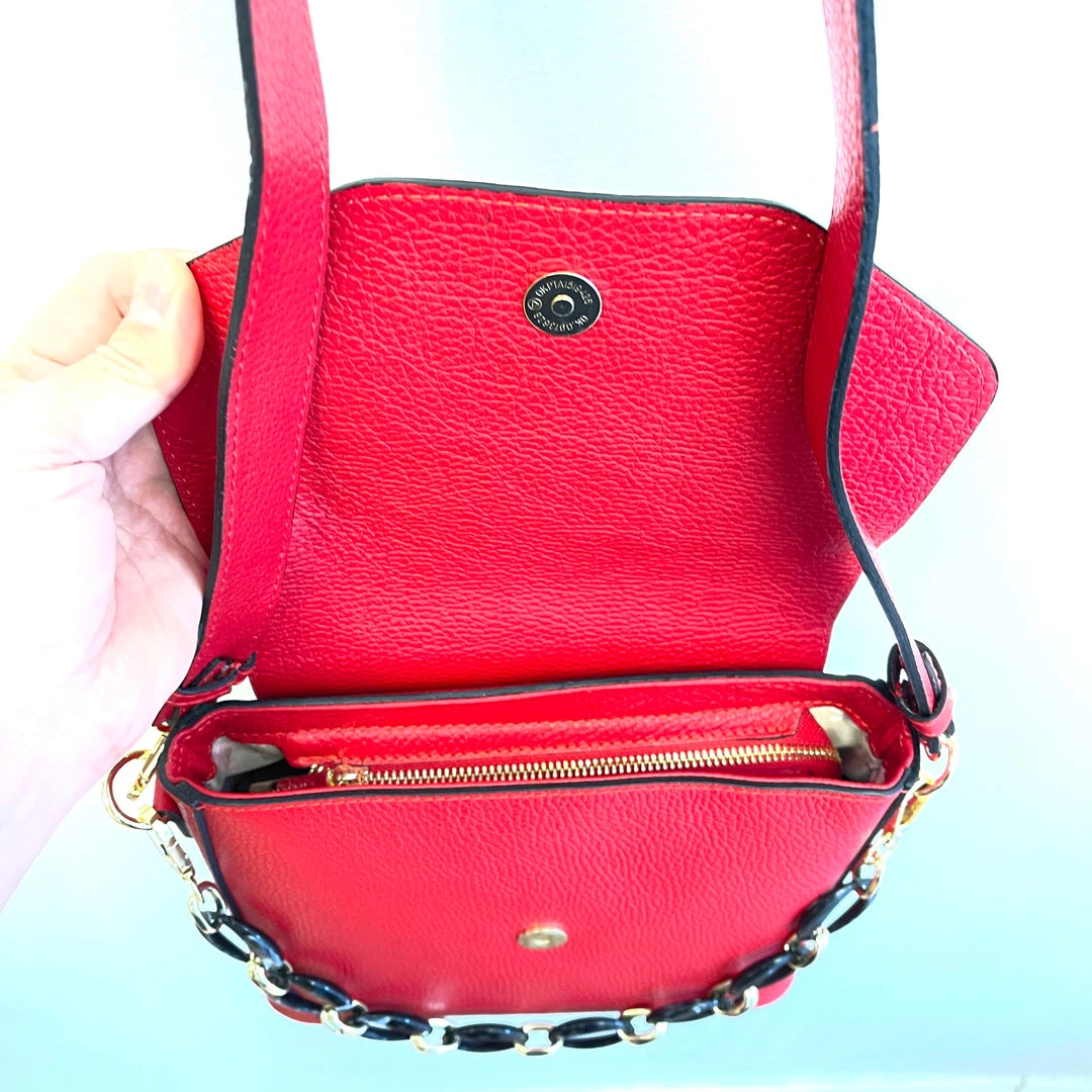 Full Calfskin Leather, detachable long leather shoulder strap, detachable resin tortoiseshell handheld chain