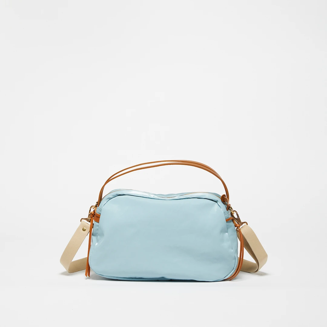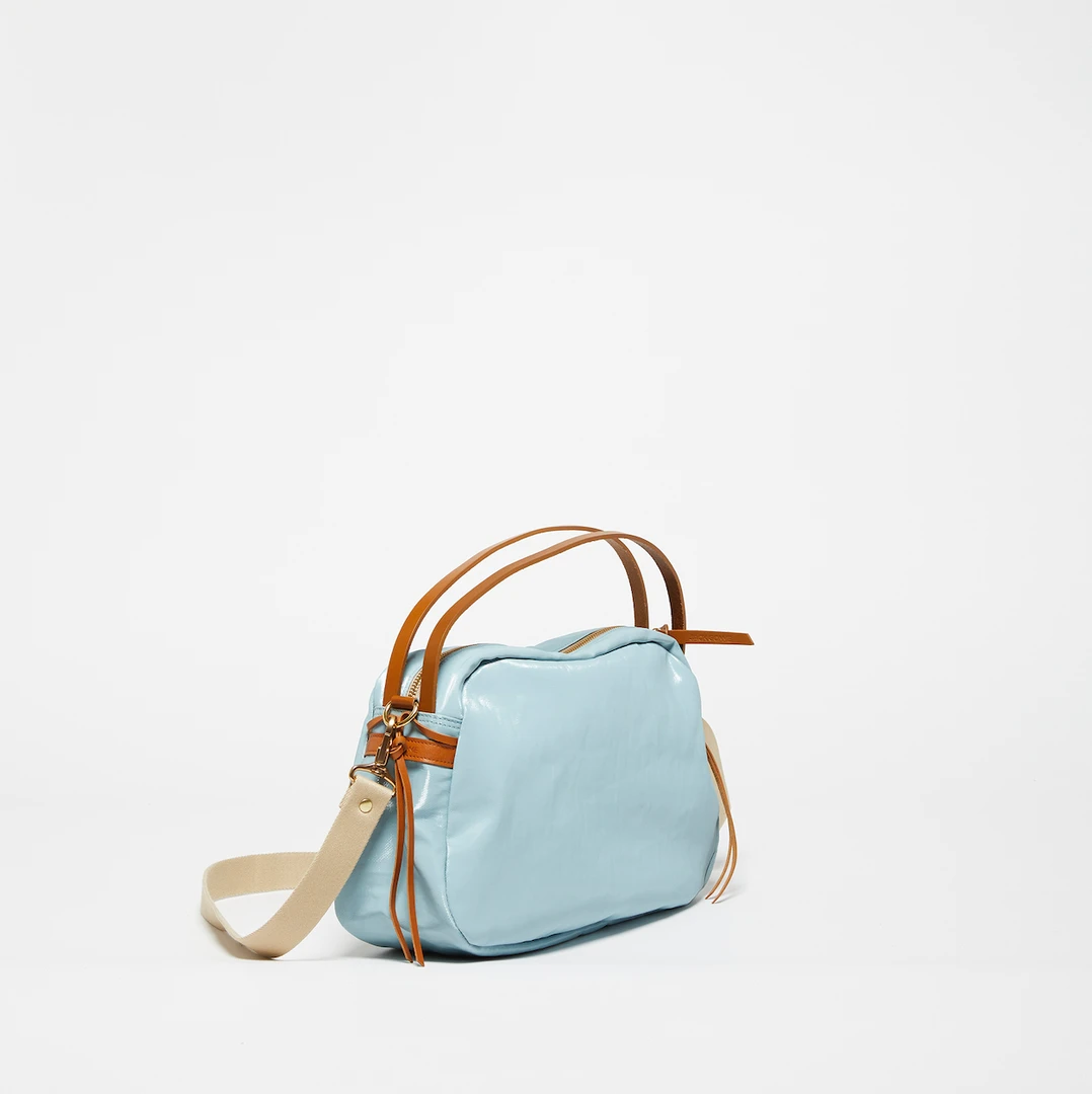 It can be worn crossbody, on the shoulder, or carried by hand thanks to its adjustable strap and double handle.