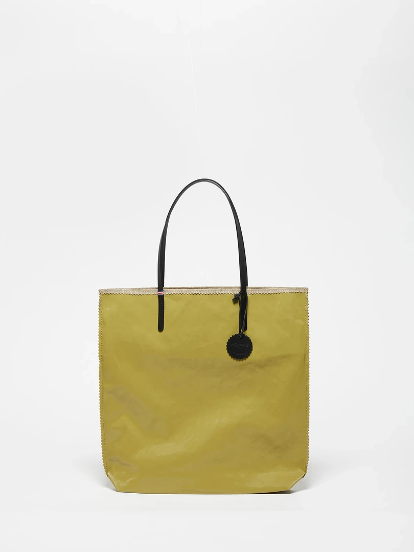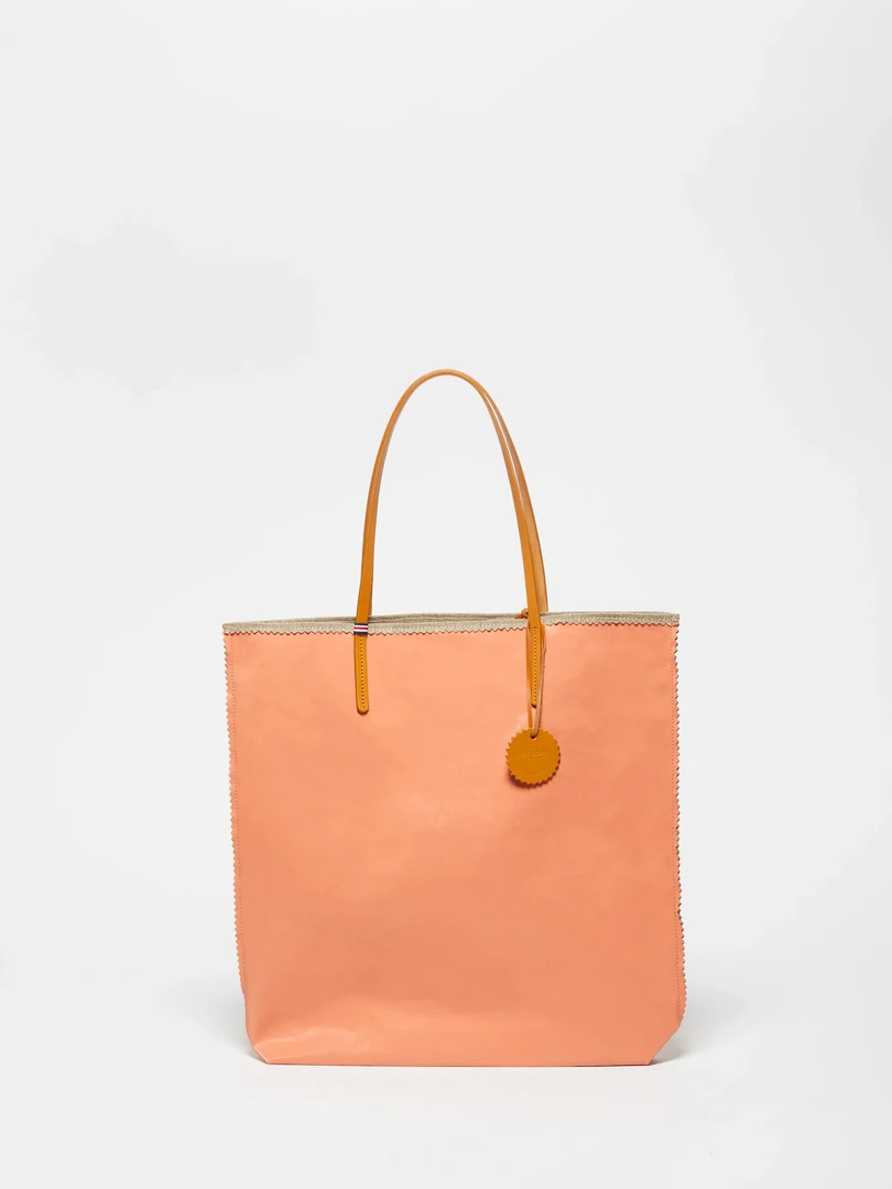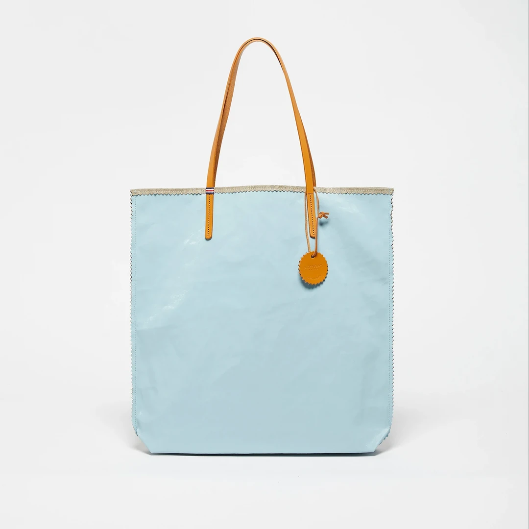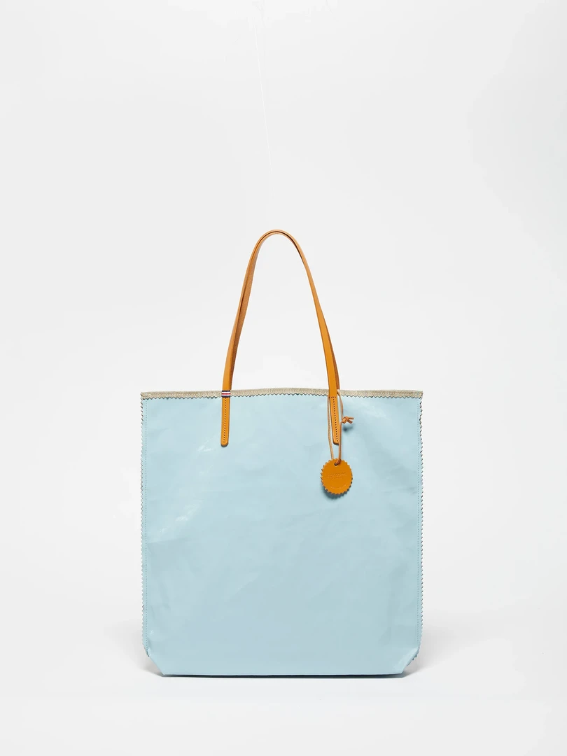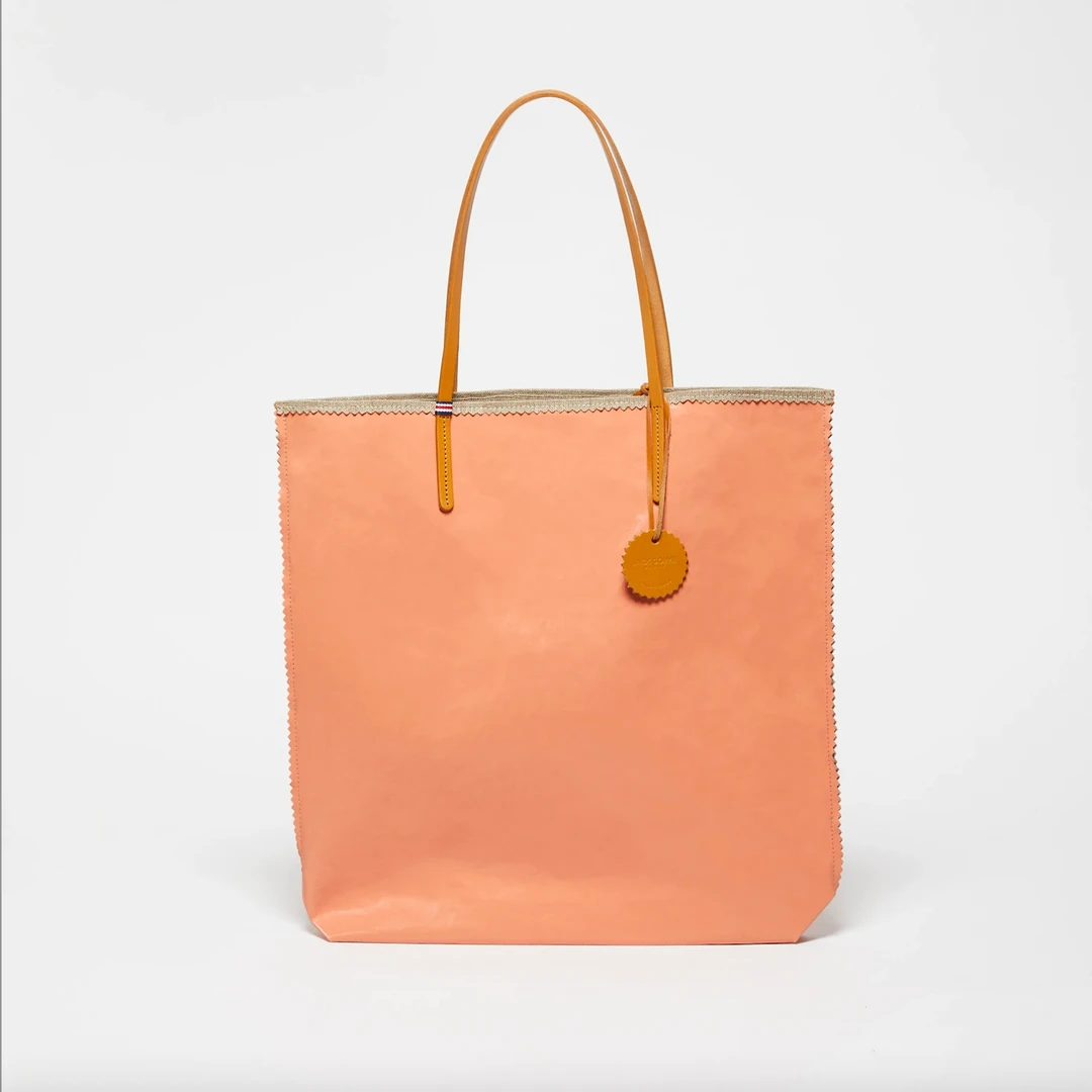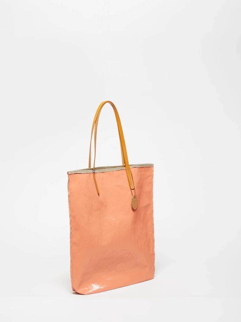 This simple tote is like a perfectly flattering t-shirt you want to wear everyday. The thin leather straps stay comfortably on narrow shoulders. It can hold up to a 15″ laptop placed vertically and letter size files.