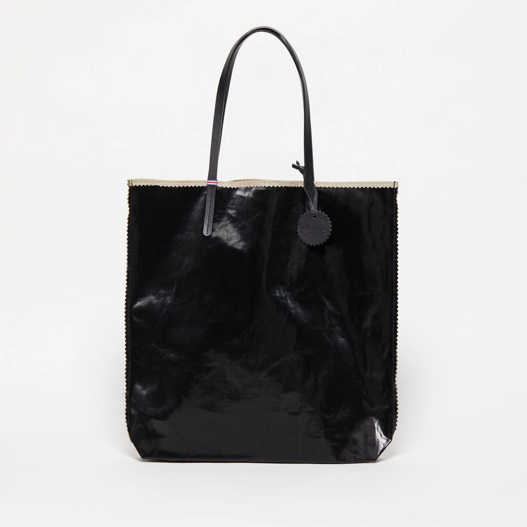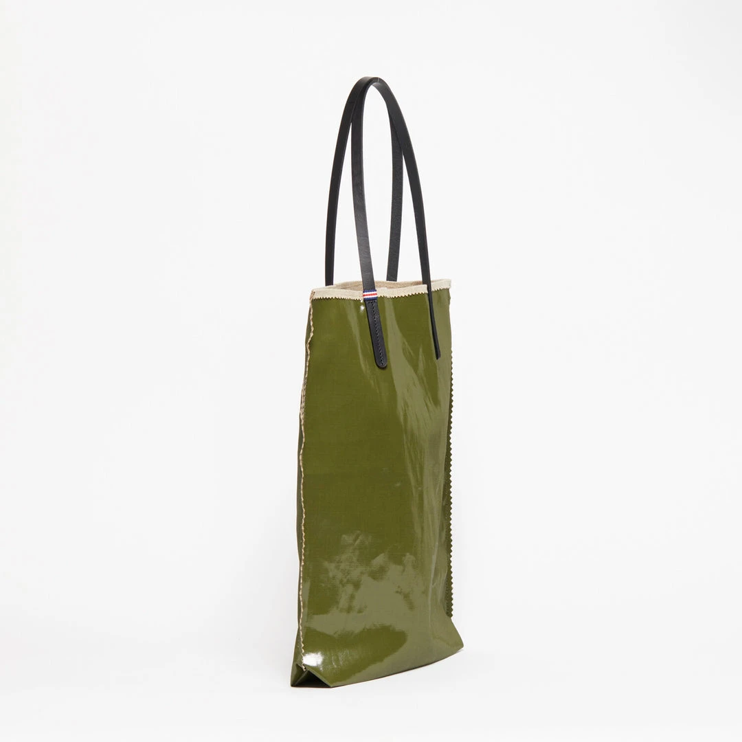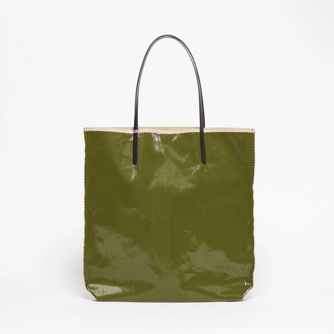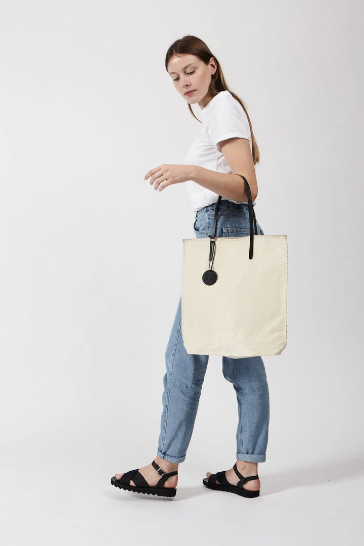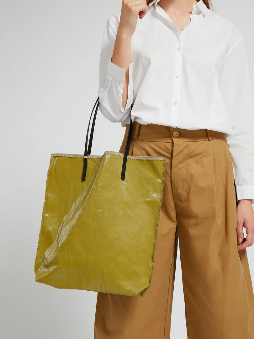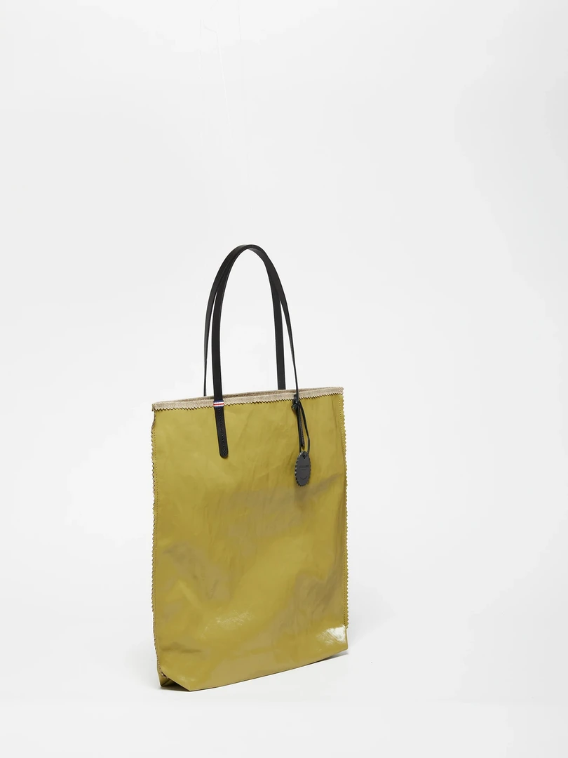 This simple tote is like a perfectly flattering t-shirt you want to wear everyday. The thin leather straps stay comfortably on narrow shoulders. It can hold up to a 15″ laptop placed vertically and letter size files.