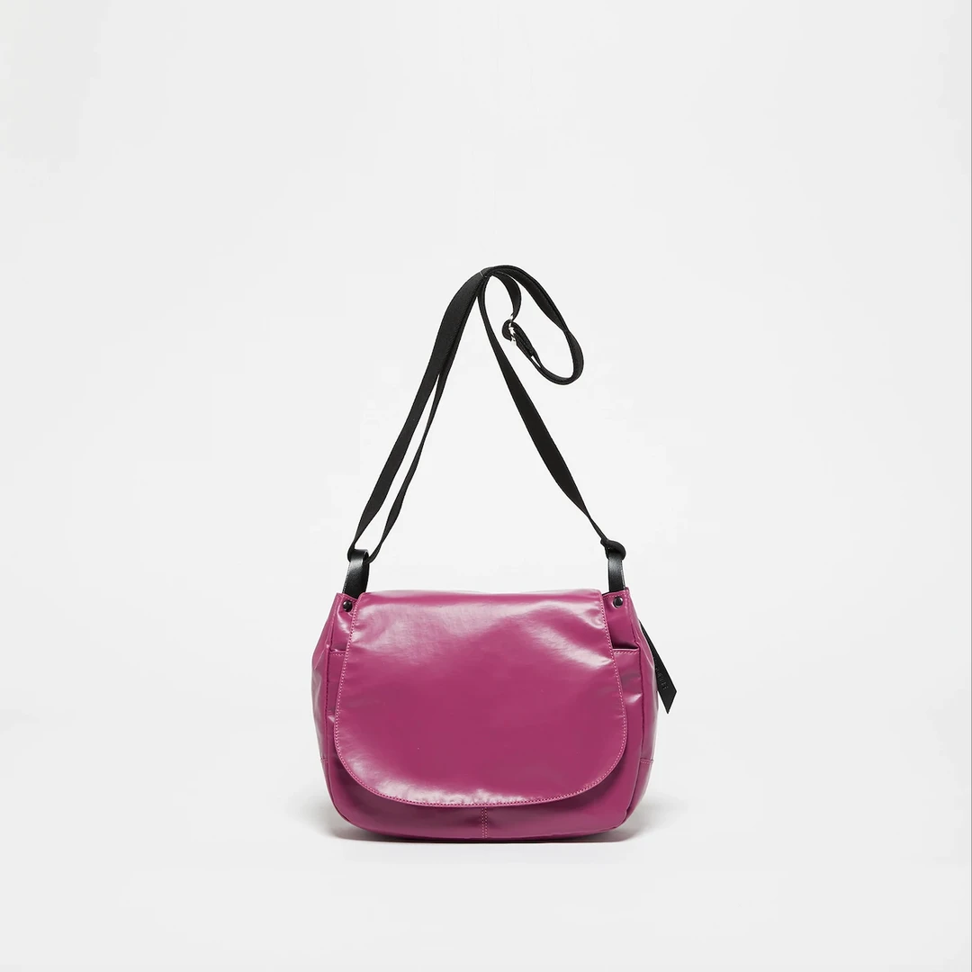 Nico is a mid-size flap messenger bag we adore for its 2 user friendly pockets that can fit a large cellphone and/or metro card, securely hidden under the flap