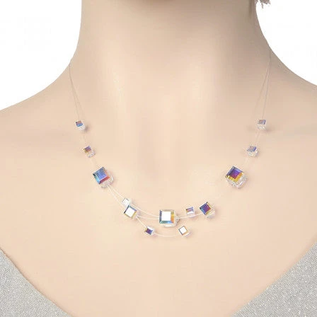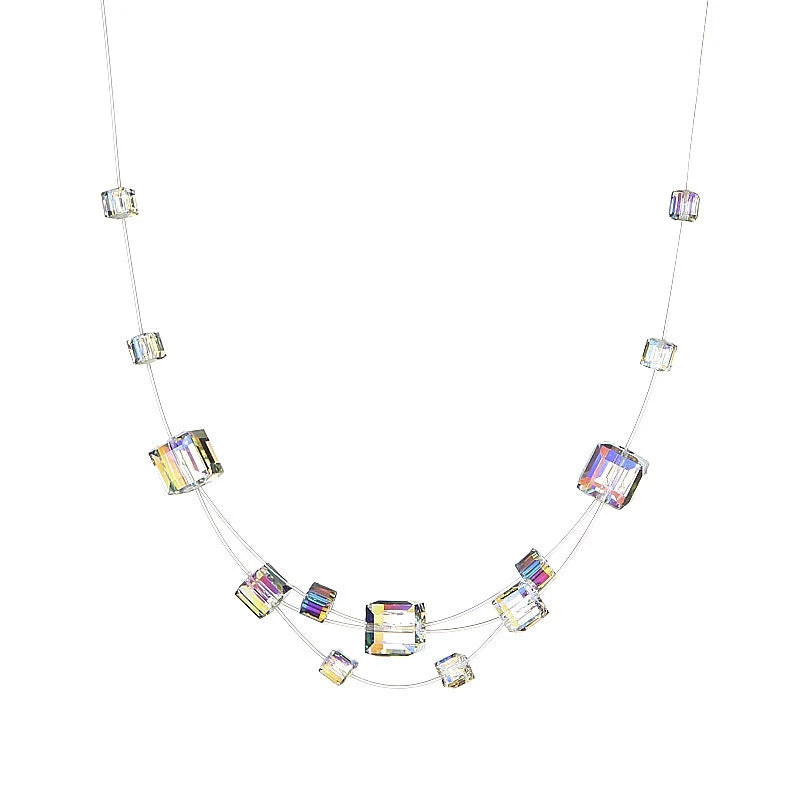 Necklace composed of crystal cubes. These are assembled on 2 rows of nylon thread.