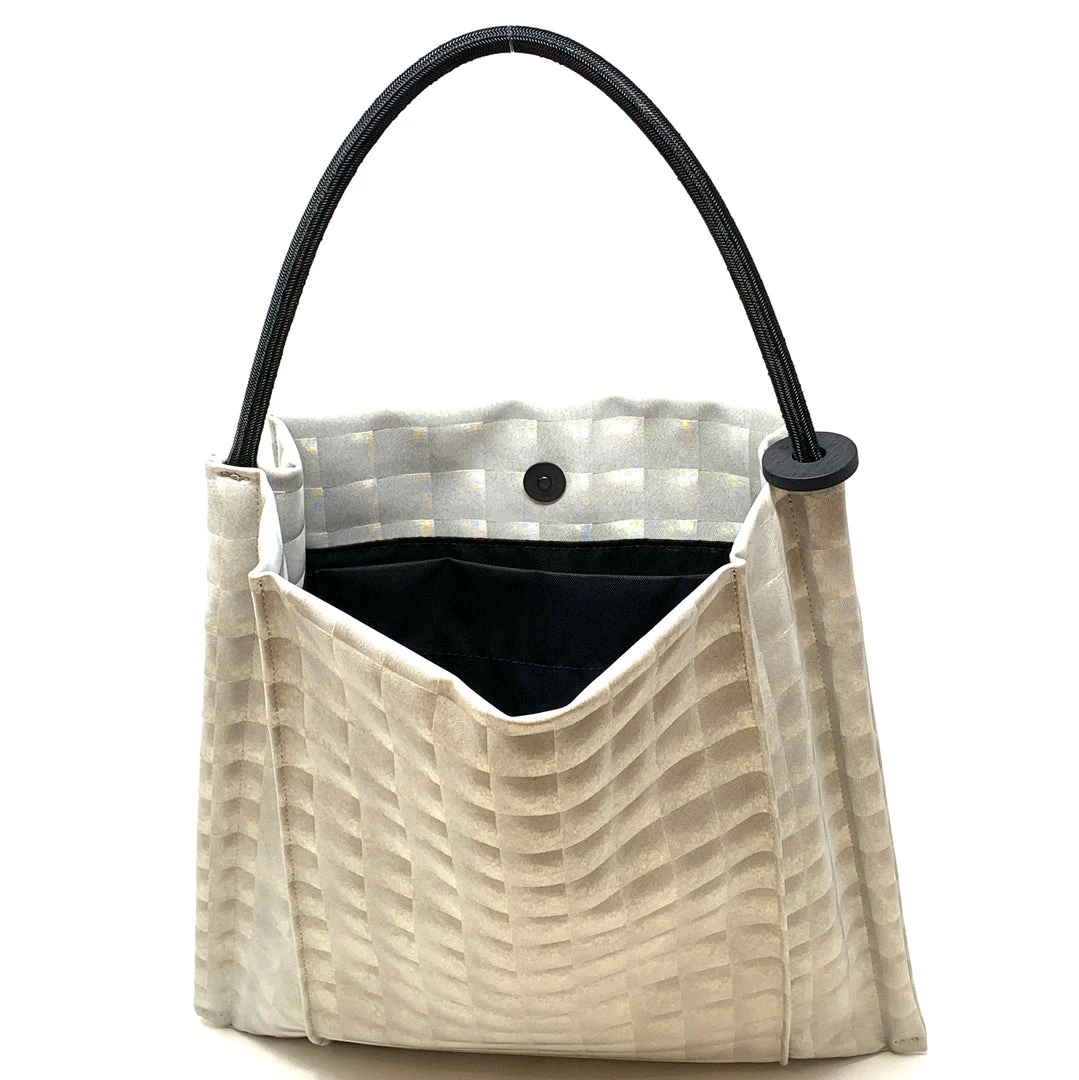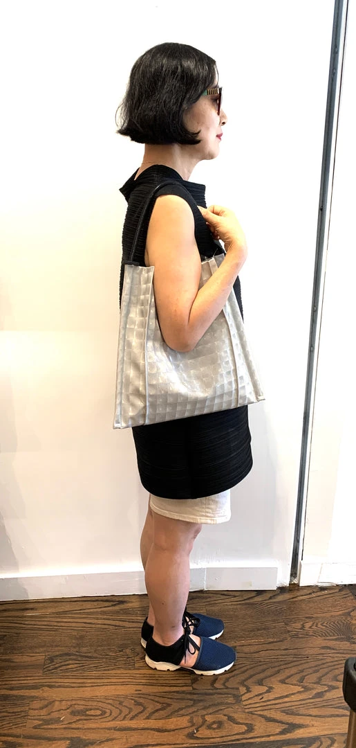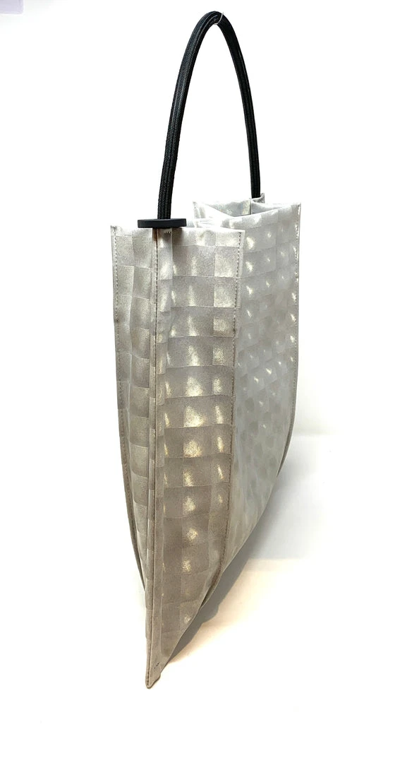holographic tonal variation. The bag holds it shape but is flexible and comfortable on the shoulder and does not add bulk.