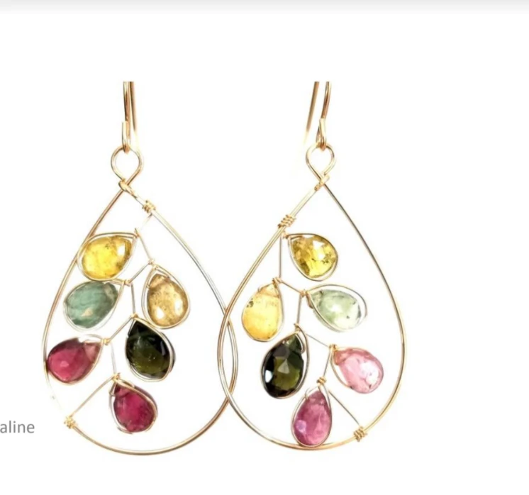 14K gold Filled wire woven through an array of tourmalines