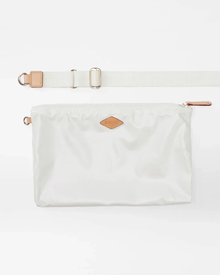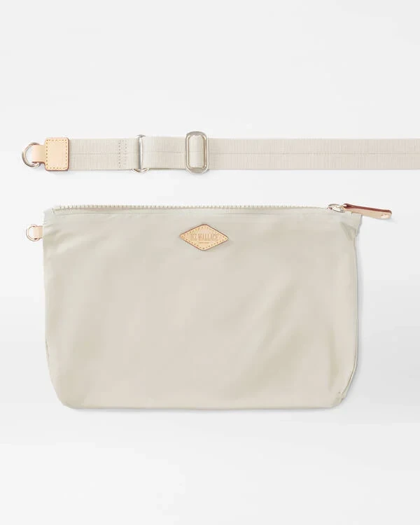 - Detachable, adjustable nylon crossbody strap