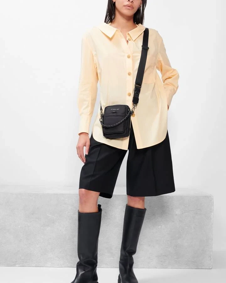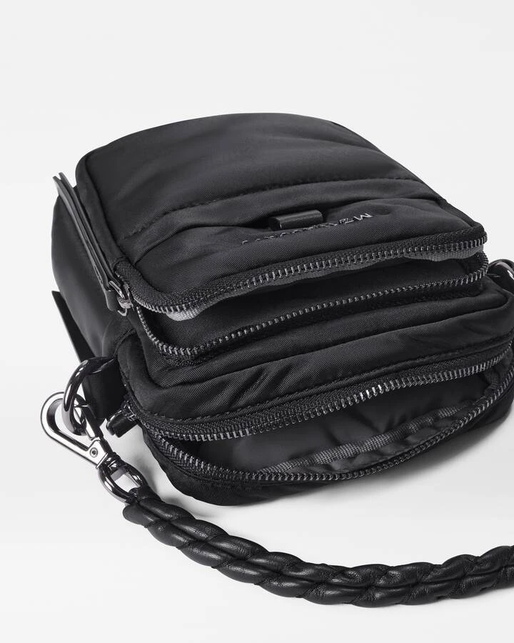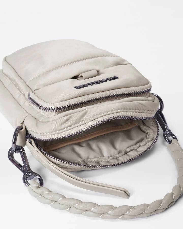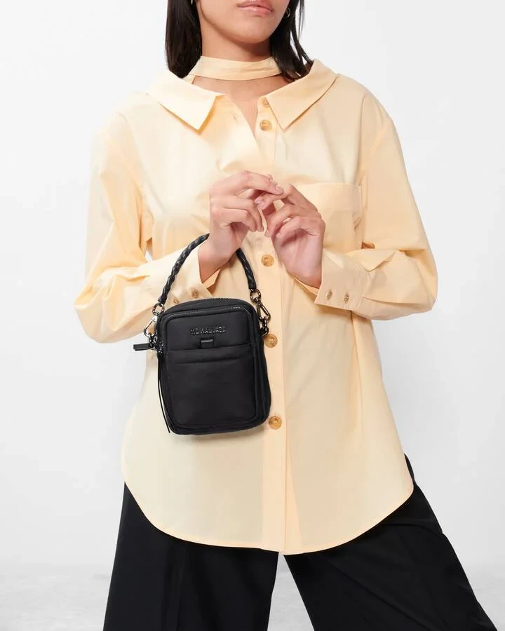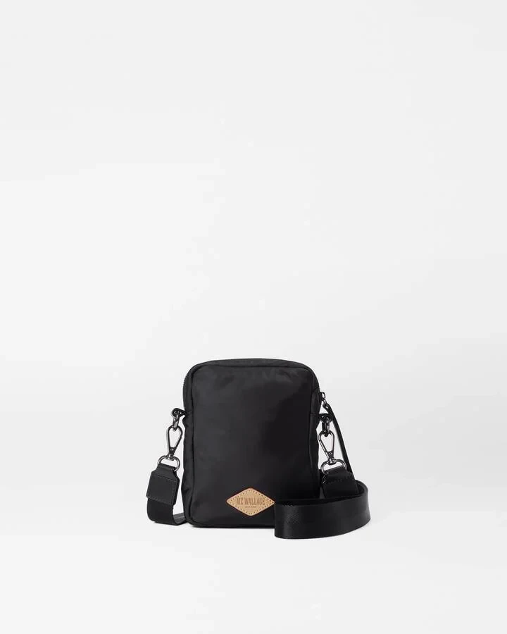 Big enough to fit a phone, but still mini. The Mini Bowery Crossbody features a zip top closure, two detachable straps, two exterior pockets and one interior one, and Italian leather accents