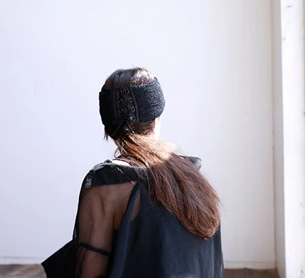 Light breathable soft, natural materials that keep hair and sweat off your face. Adjustable size with lace back tie.Â