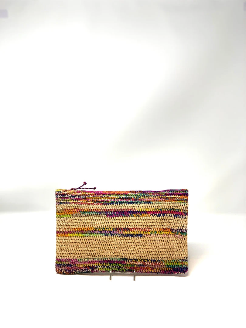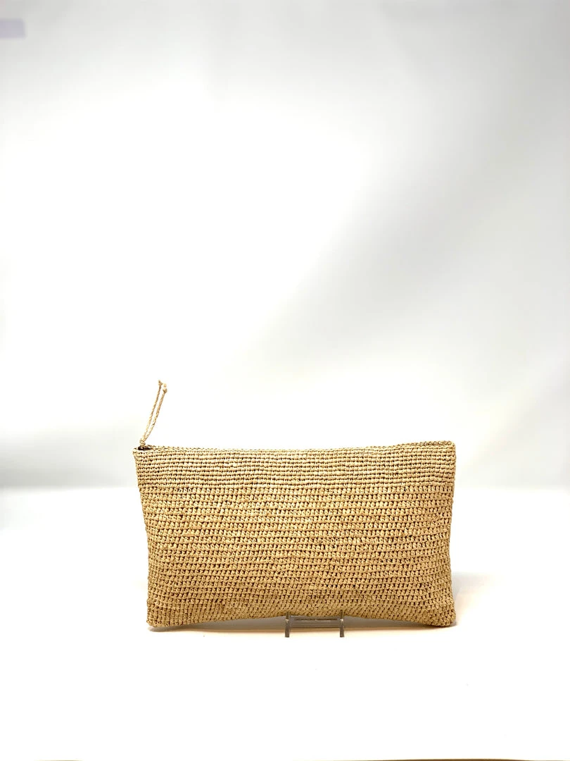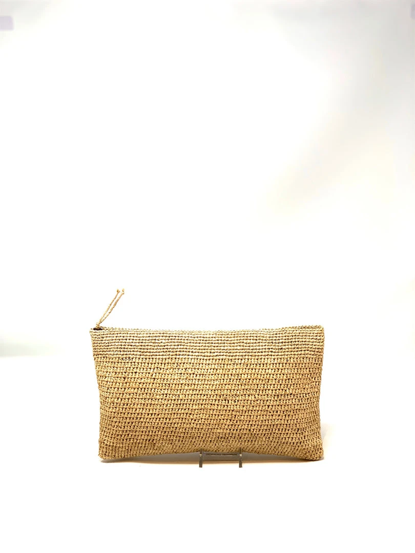 This small raffia zip clutch is a fun statement for those summer days and nights.