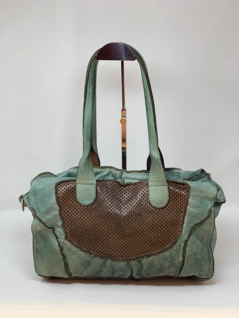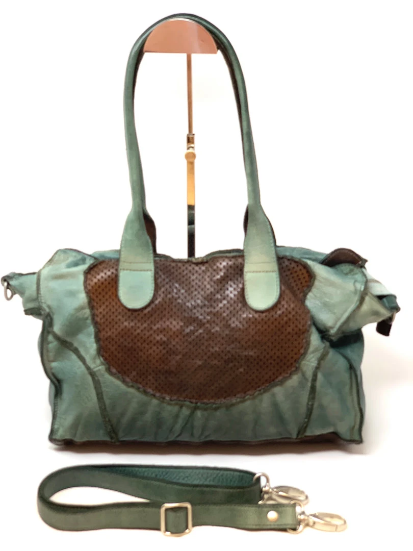 VLD Perforated Patchwork Pane Shoulder Satchel In Teal